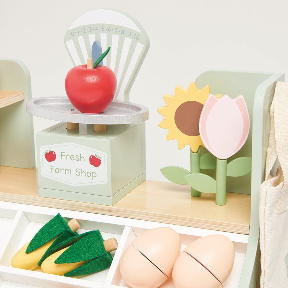 Feed their imagination with this gorgeous Market Stall Shop. Complete with colourful veg, flowers and farm shop produce and handy little shopping bag, there’s plenty on offer to tempt every little shopper. It also features working scales for added play value and is 360 play, making itgreat for imaginative play and developing communication skills.