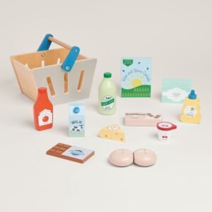 Wooden Grocery Set & Shopping Basket