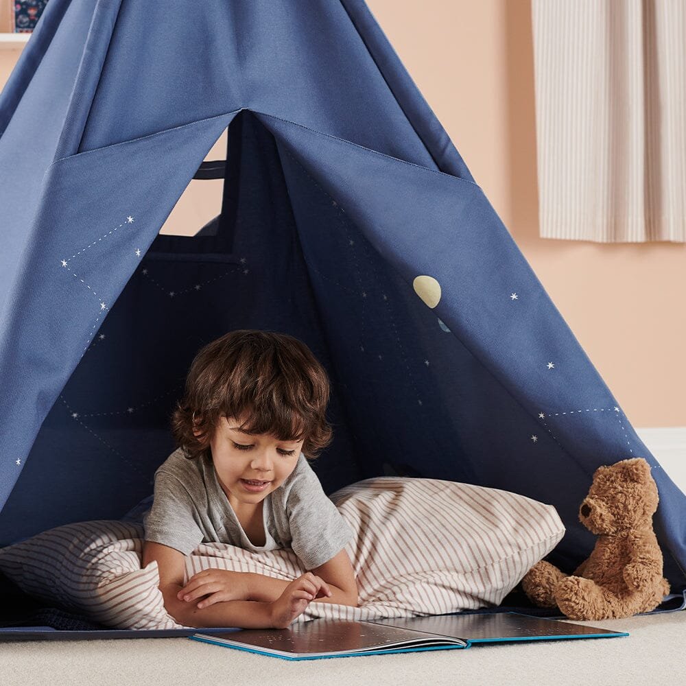 We’re bringing the wonder of the universe to your world. This Play Teepee in a Space design features an awesome solar system print inside complete with glow-in-the-dark constellations; it makes the perfect spot for space-mad kids to snuggle up inside with their favourite cosmic comic or picture book.