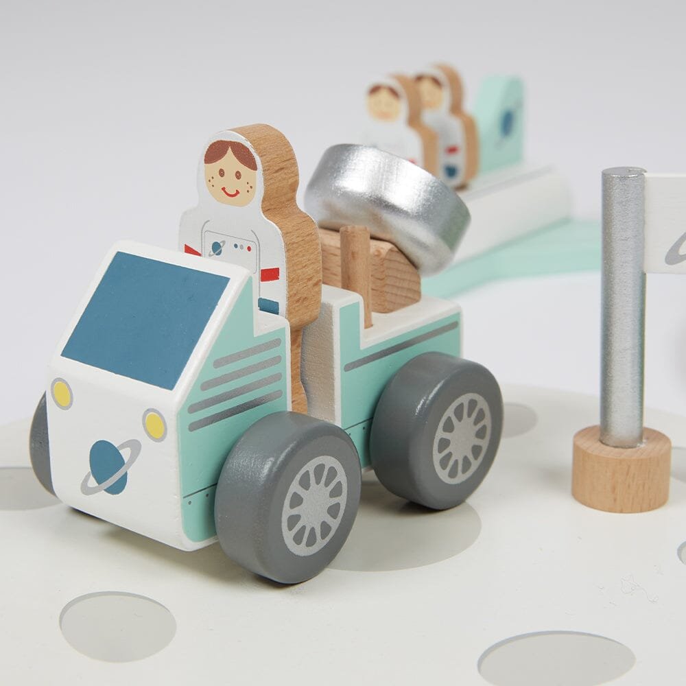 Watch their imagination take off when they get their hands on this Wooden Space Toy. A GLTC exclusive, it comprises a rocket, rotating launch pad, Earth and moon play surfaces and much more. They’ll love setting up for launch with the crane loader and three magnetic cargo blocks; the crane and radar both pivot and the crane moves up and down! There’s even a refuelling station and astronaut play figures to bring their cosmic stories to life. When it’s time to head back to Earth, all the pieces tidy away inside the printed cotton carry-all bag. Mission complete.